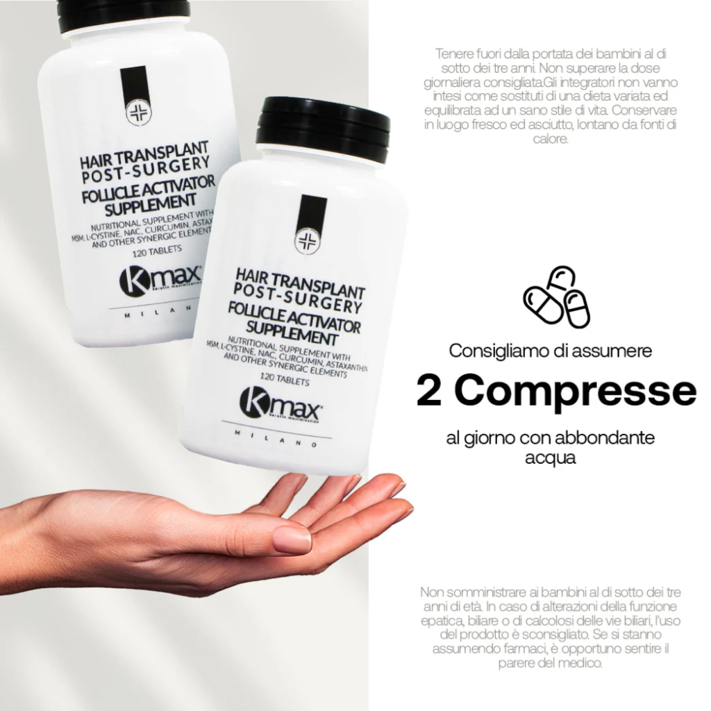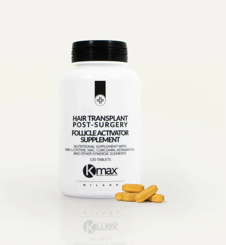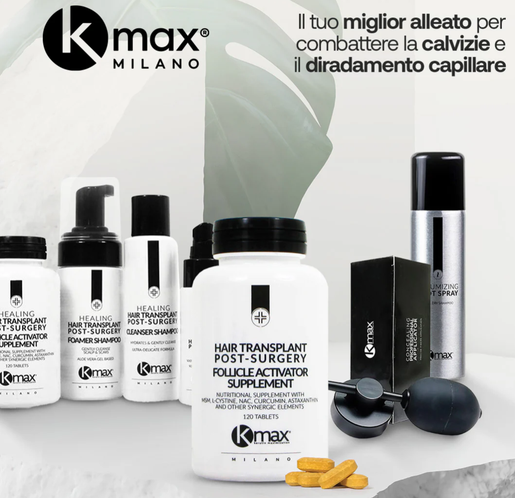 Kmax Integratore post trapianto dei capelli è un integratore alimentare che offre un'azione stimolante, antisettica, antinfiammatoria e antiossidante per velocizzare la ricrescita dei capelli post trapianto