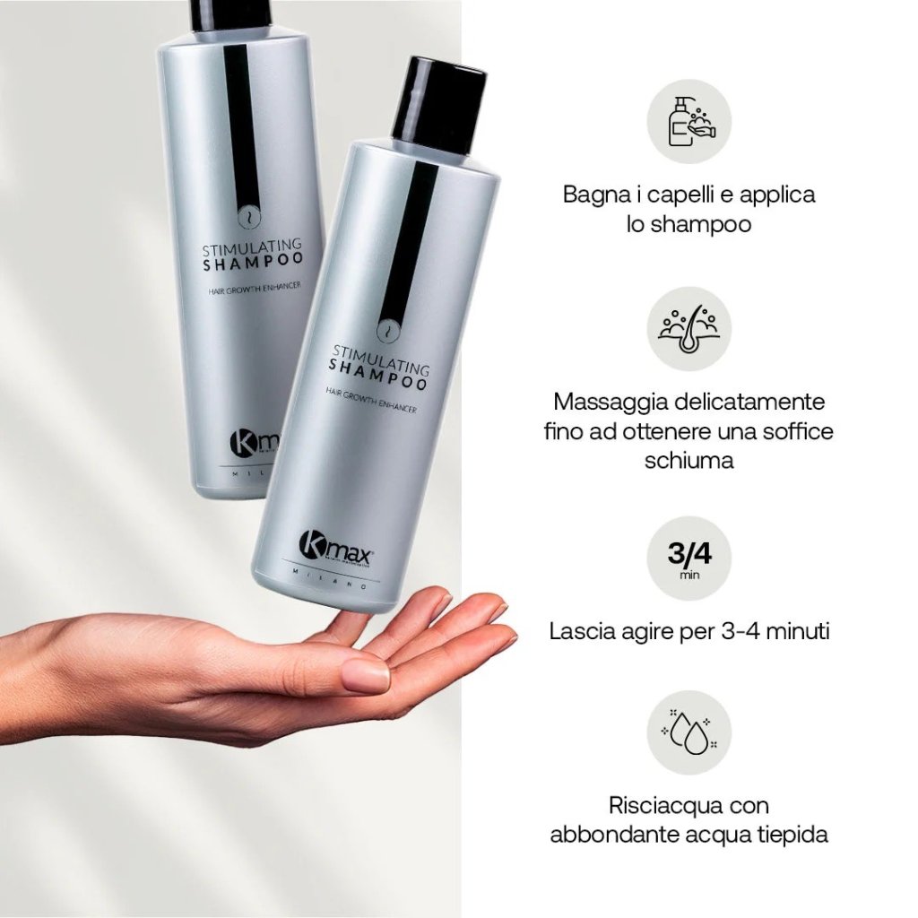 Kmax shampoo anticaduta è il miglior shampoo per contrastare la caduta dei tuoi capelli, stimolarne la ricrescita e detergerli in modo efficace.